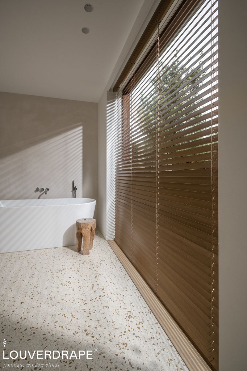 Tip: De Hinoki houten jaloezieën van Louverdrape zijn speciaal ontwikkeld voor gebruik in vochtige ruimtes,