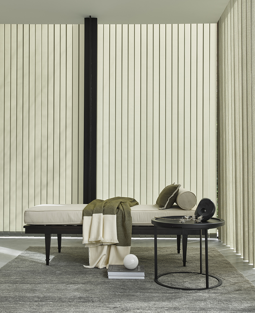 Functioneel en stijlvol, de verticale stroken of lamellen hangen bovenaan vast aan een rail en kunnen worden gedraaid om licht en privacy te regelen.